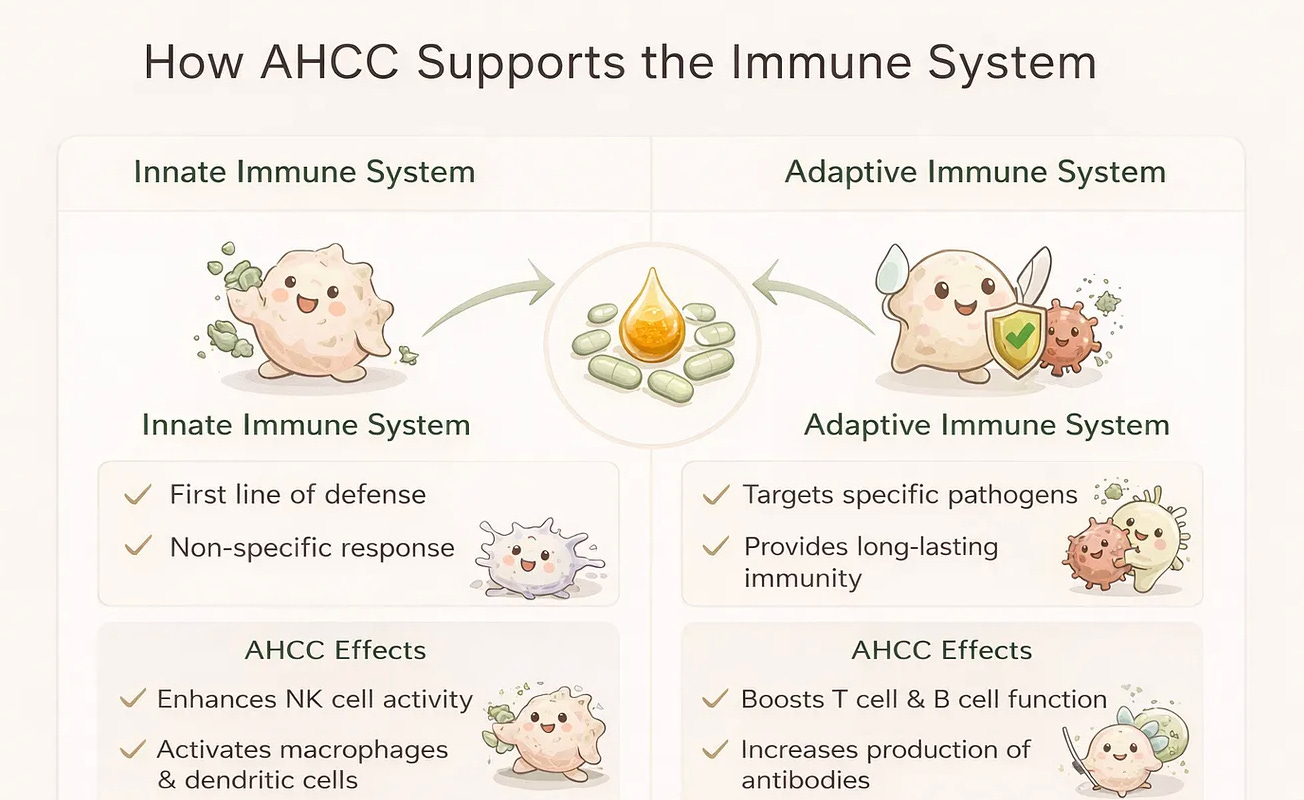 AHCC supports both systems and their intricate parts. It acts almost like a guide, pushing it to the place it is needed most.