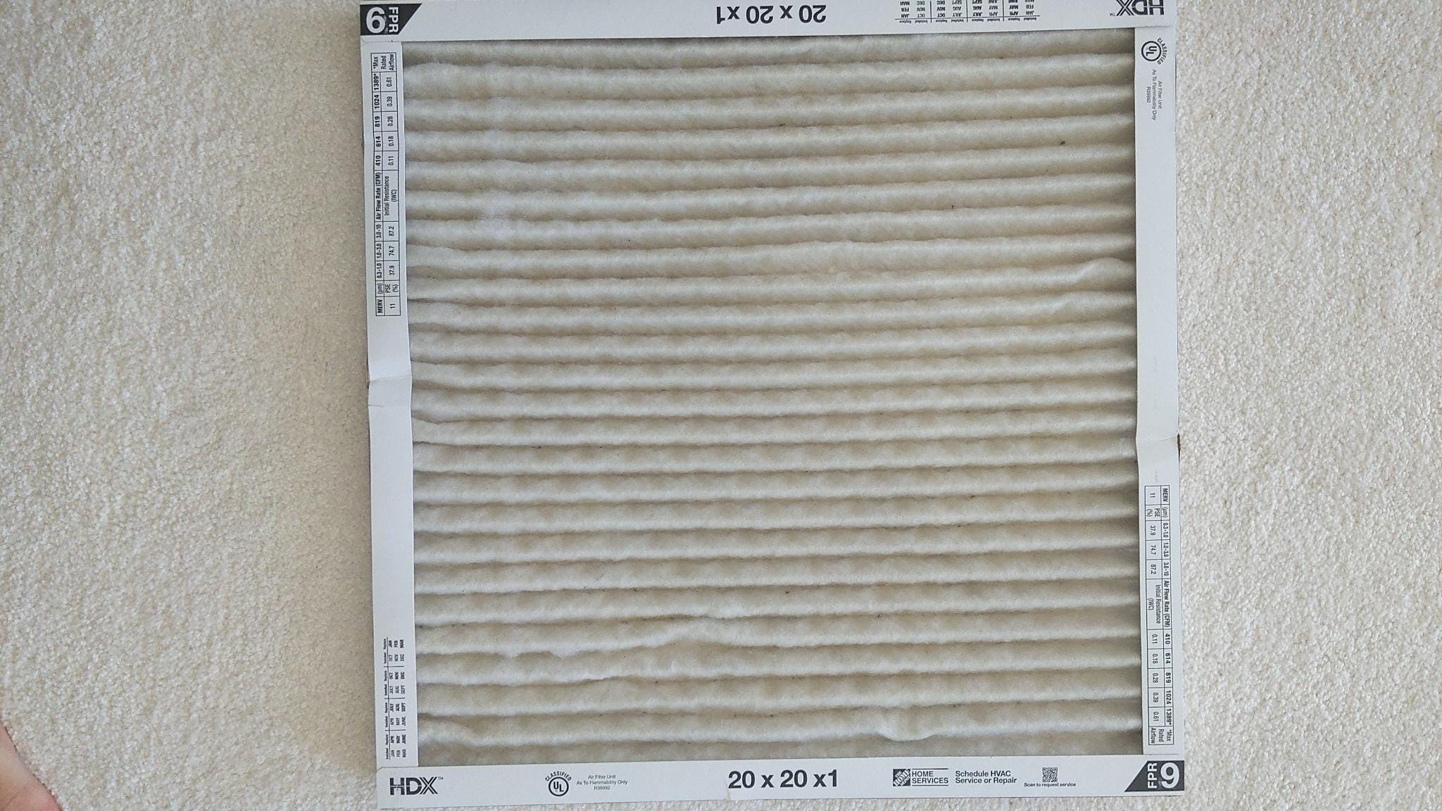 Proof of how clean my home air is, this is a 4 month old merv filter for my HVAC. Barely a spot of dust on it, considering how old it is thats pretty damn impressive.
