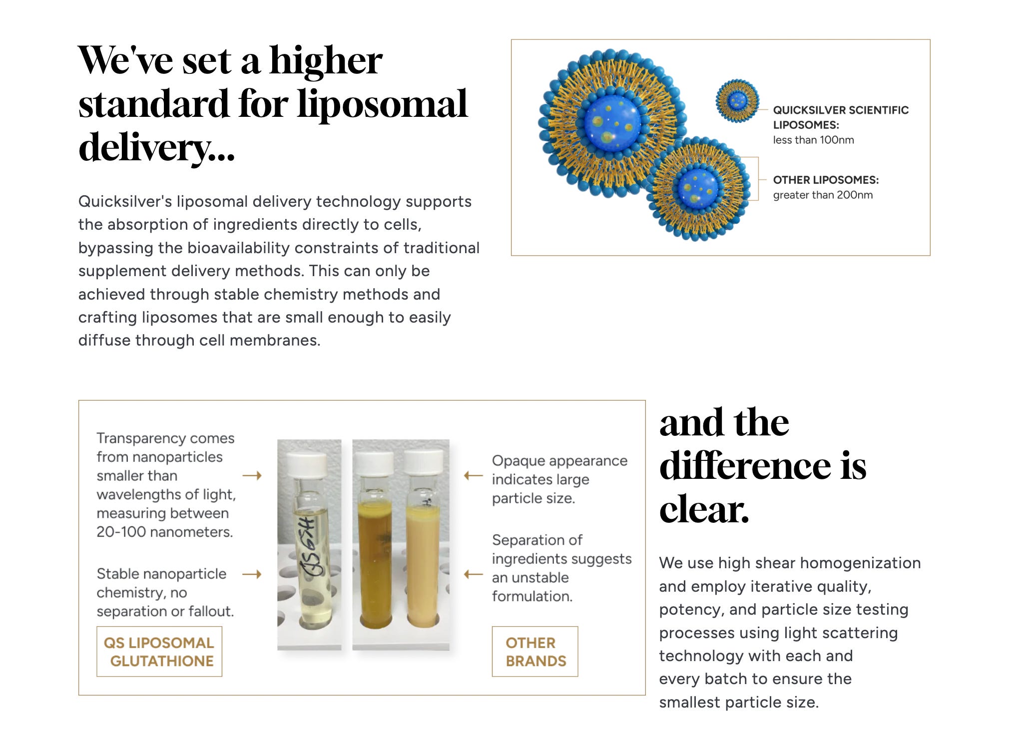 Quicksilver, thankfully, has the most advanced delivery system on the planet. Their nano-sized liposomal particles are on par with an IV or injection.