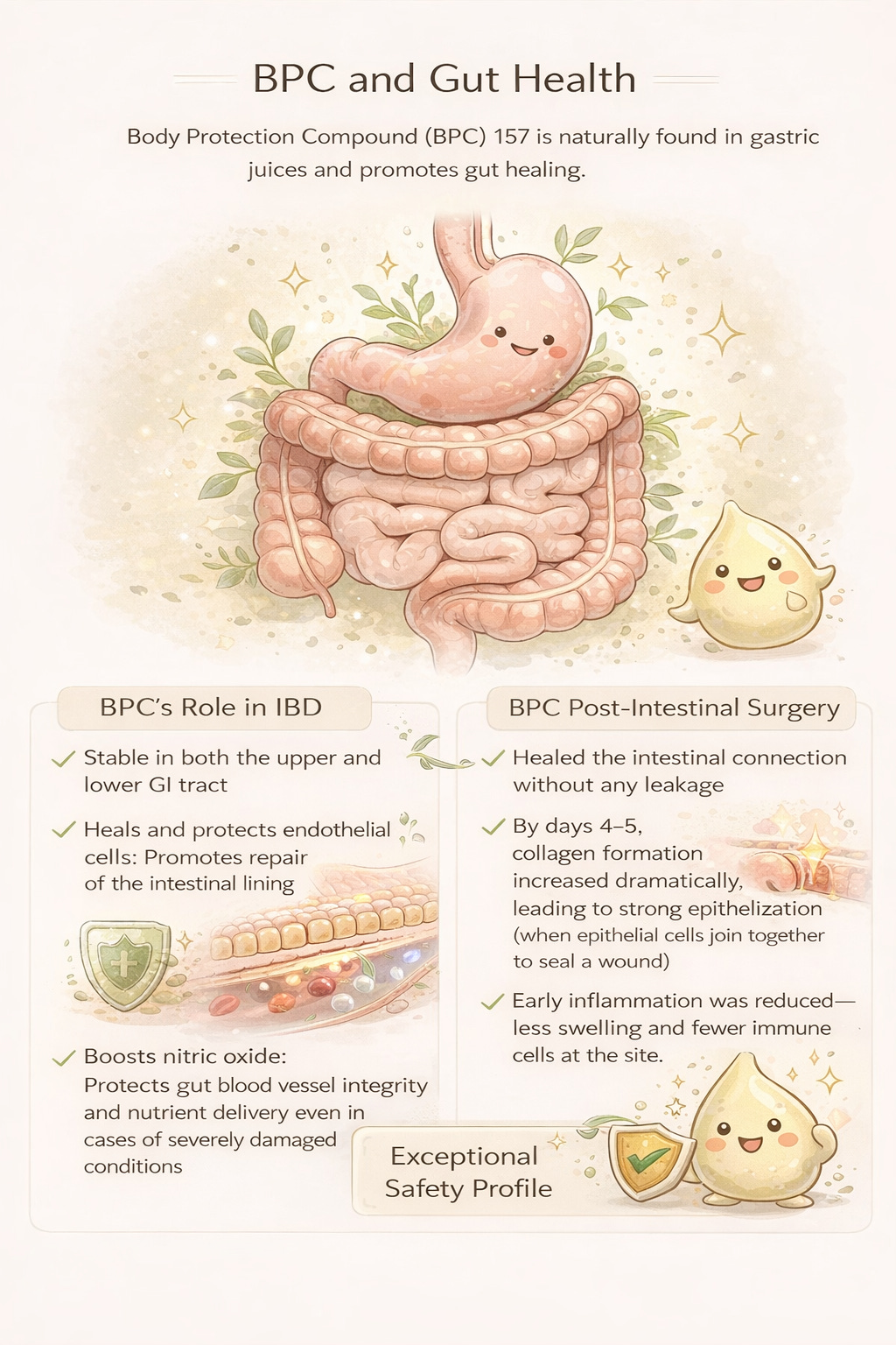 BPC is readily available within the GI tract, supporting areas of damaged or impaired tissue.